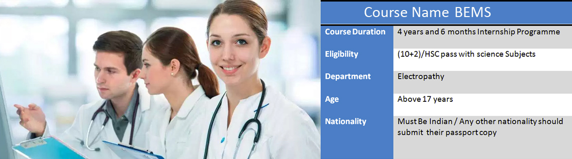 The candidates who want to pursue BEMS course in Electropathy should have completed senior secondary (10+2) with science subjects viz. Physics, Chemistry and Biology. Even science graduates can apply. There are numerous institutions across the country and they spell out different rules and regulations for entrants. Please refer to specific institutions for their details.